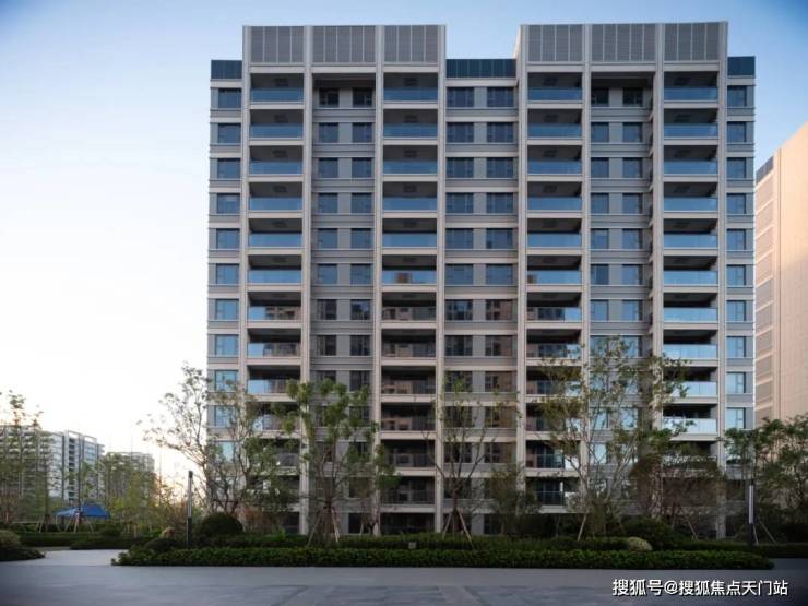 外立面整体形制优雅端正,时尚轻盈,简约有力,横向和竖向金属线条搭配。以简洁现代的线条表达立面感,加上对称的美学,使得建筑整体有着十足的现代感。同时,更大的窗墙比,让每一户的采光都能保持更佳。