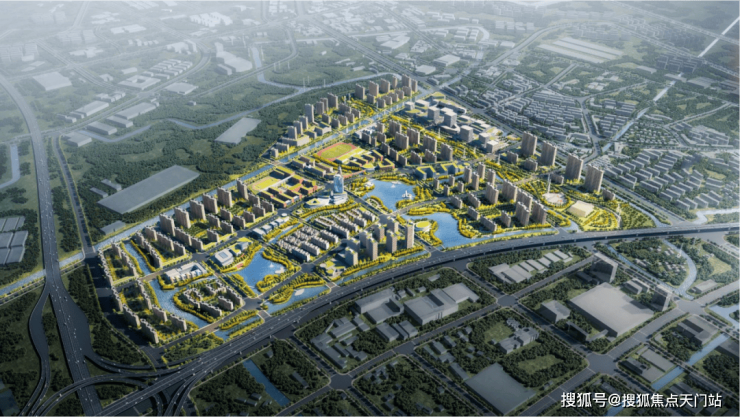 东区规划约1400亩土地,整体架构为“一核、一带、两轴、多组团”,聚焦商务研发功能。