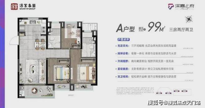 深嘉上府主要提供建筑面积约88/99平方米的精装修三居室 ✅深业深嘉上府 售楼处电话☎:400-118-3159【来电可享受优惠】⭐,通过其 高耸的立面和简约的线条,彰显出生活的品质感。该住宅区仅由四栋建筑组成,呈一字型排列,每户均面向阳光, 享有开阔的全景视野和充足的自然光照。