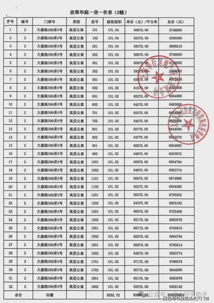 大华公园柏翠项目一房一价表▼