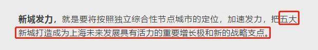 文章中指出,在十四五期间,上海五个新城要加速发力,按照独立综合性节点城市的定位, 打造成为上海未来发展具有活力的重要增长极和新的战略支点。