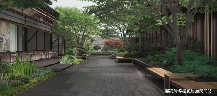 第二景风帘翠幕:进入青承门后,是一方精致的芭蕉庭院,让业主有一个洗尘归心的宁静体验。