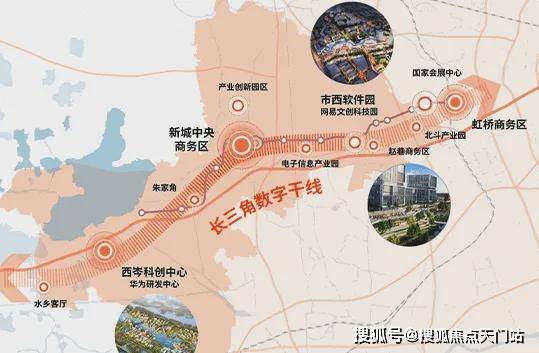 比如产业,其他新城多以传统工业+新兴产业为支柱,而青浦新城独树一帜,大力发展数字经济, 承接虹桥商务区、西岑科创中心、市西软件信息园的创新辐射及产业链延伸,打造“长三角数字干线”,形成科技中心,产业发展势能极其庞大。