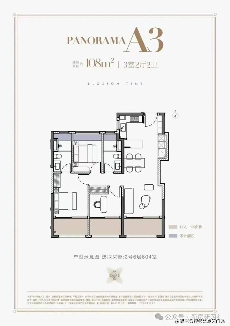 建面约108㎡(高层)三个阳台全部南向设计(实得率差不多在94%左右。)