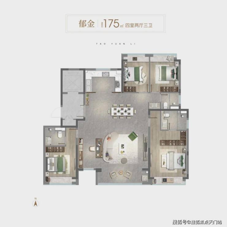 通过新桃源会客厅社区广场与独立社区会客大堂、林荫归家步道、中央景观聚场、品质入户单元昭示性景墙+专属入户铺装、首层精装大堂五大节点,赋予归家路途更多逸趣与美好。
