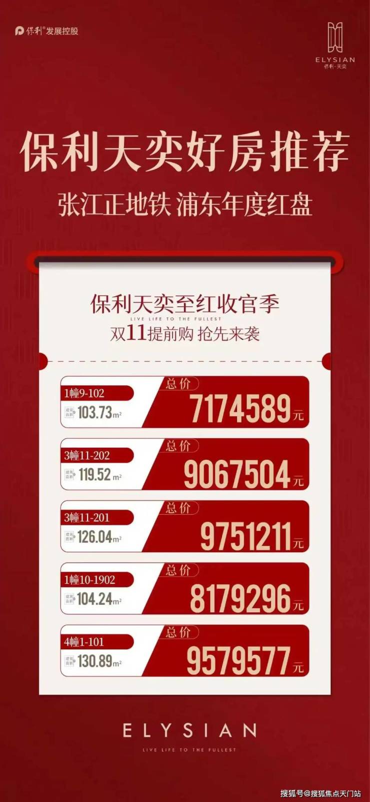 浦东·唐镇「保利·天奕」少量约104-135㎡3-4房;总价718万起!
