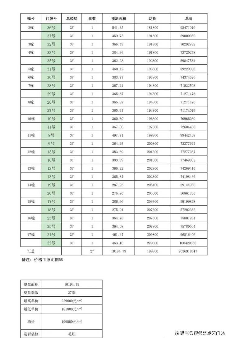 【信达 信安里·忻园】别墅一房一价表