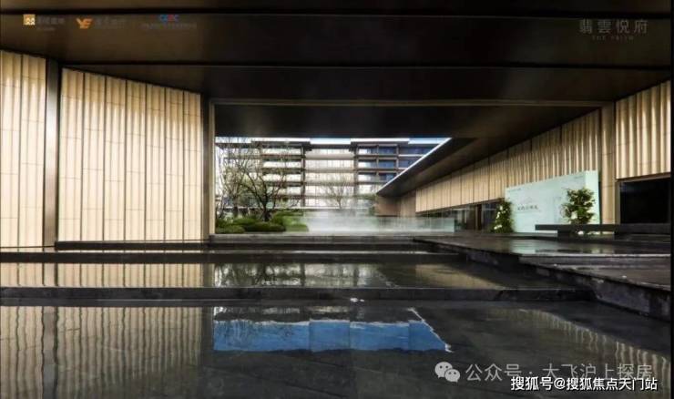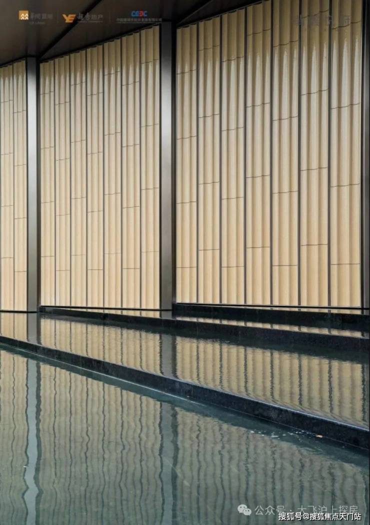 入口处选用了大面积 冰裂琥珀釉陶板,背后的工序非常复杂,从选材到运输,最后拼接,每个环节都是高成本和高技的工艺工法。水晶景观庭院在动与静之间,细节到了流水、园林里,值得一提的是 ,庭院里的水,并不是静态,而是有涟漪的流动,同时为了保证低区业主不被流水声音干扰,特意做了“静音水”。这一现象的背后,是1300多块安哥拉石材的切割与拼接,完全是把细节拉满。