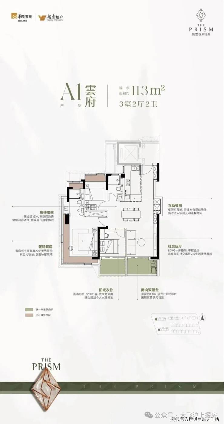 建面约113㎡3房 PrismVilla175-220㎡精装叠墅