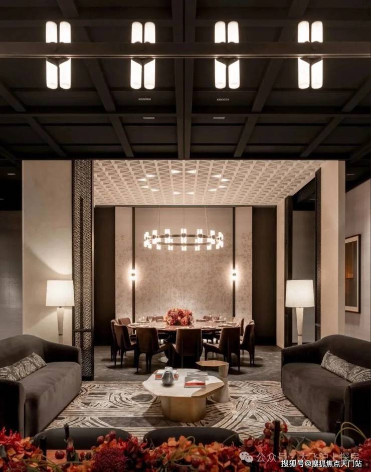 私宴厅,配备专业级厨房,大人的社交聚餐、小孩子的生日聚会,精准地覆盖每个人的需求。 酒廊背景墙,loewe同款营造的限定松弛环境,引领着法式的优雅与艺术氛围流淌至每个角落。