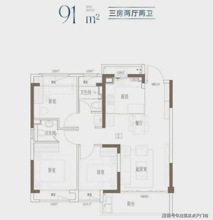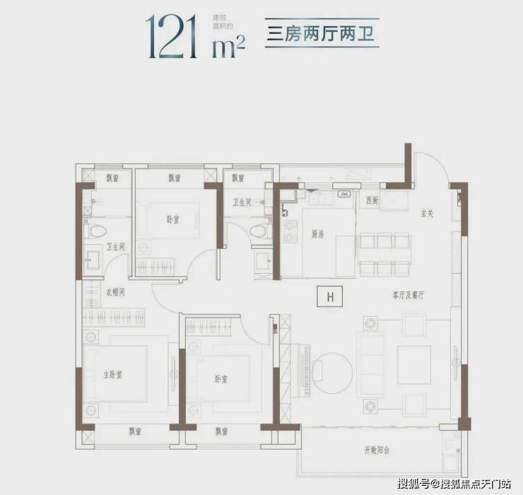 建面约91㎡-121㎡ 3房2厅2卫;这几个户型都是3房的设计,满足想一步到位的购房者。3开间朝南+客餐厅连通阳台+全卧室飘窗,以及套房式主卧设计+2卫,即使是三代同堂,也能让生活从容。