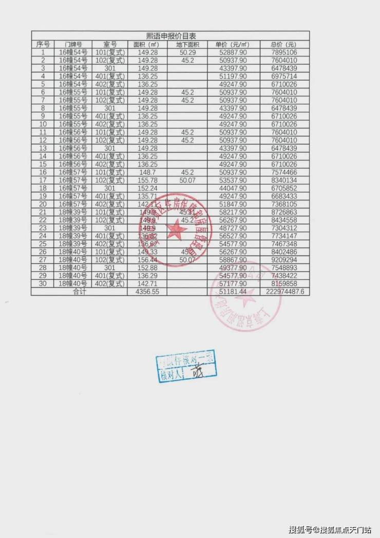 一房一价表: