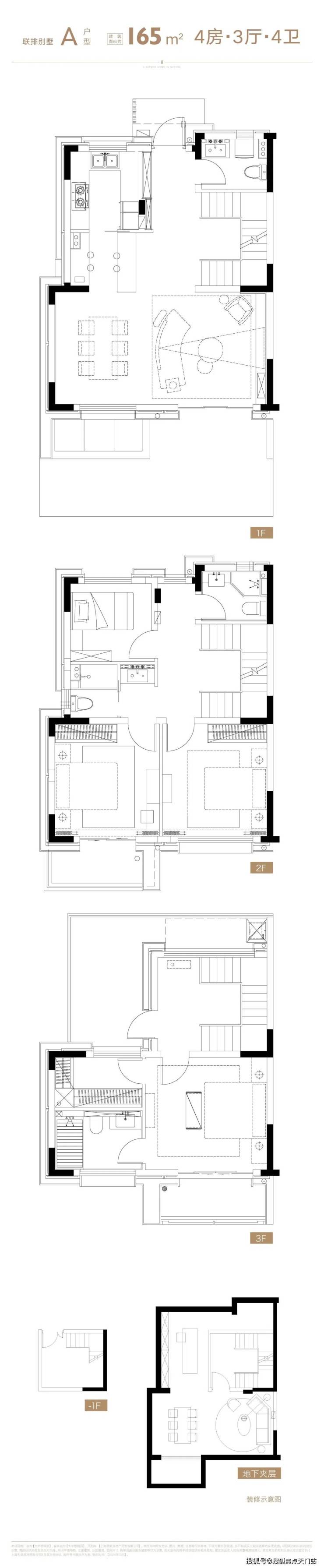 项目主力有建面约158㎡、165㎡联排别墅户型,地上三层+地下空间,设置 地下采光井+星空露台等,真正做到了 独门独户、有天有地、超享空间!