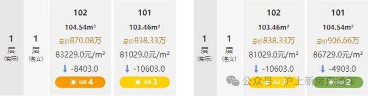 对比张家浜、新杨思、北蔡通面积段新房,起始总价超800万甚至接近900万,平均倒挂近16%!!