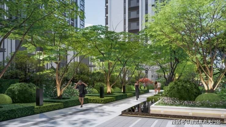 【保利·光合上城】采用 “一心两轴三门”的的趣味归家动线,结合石材、绿地、地垫编制的多样视觉地面铺装,将社区景观从热闹到安静,沿途层层推进,带来乐趣不同的漫步触感。