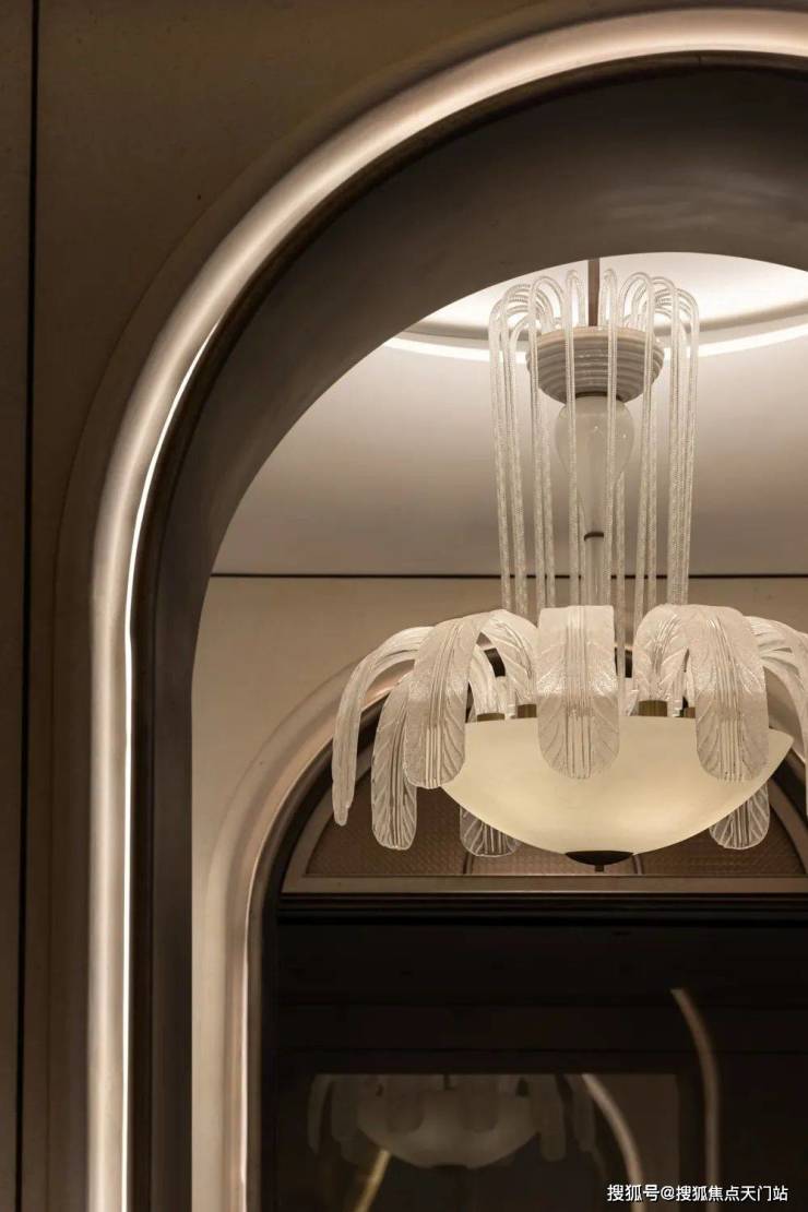 过厅的艺术吊灯,宛如一簇盛放的水晶花朵,璀璨光华在晶莹器皿间流转。