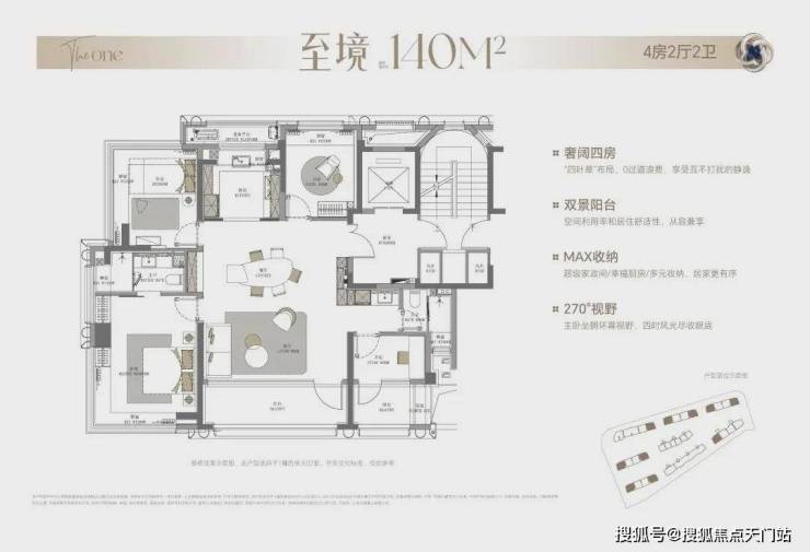 以约13.95米的南向超大面宽为基调,主卧面宽升级至约4.15米,规划可自由定义的X灵动空间,可以是书房、茶室或琴房,伴随家庭全周期成长而演变,让每位家人都能获得精神的沉淀与自我的和解。面宽约5.8米双厅则完全超越功能范畴,成为承载家族宴请、圈层社交的恢弘场域,尽显居者的格局与风范。270°转角巨幕视野,将光、风与景致更大程度地引入室内。