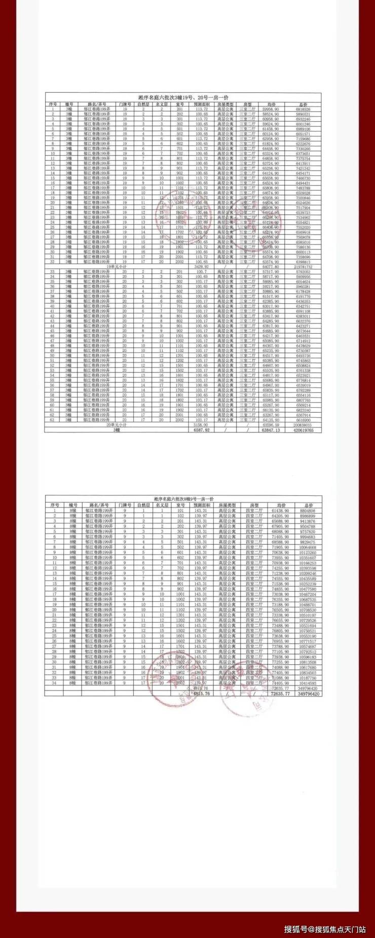 上期一房一价表如下: