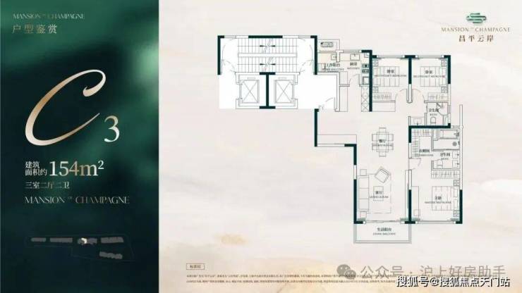 此户型最靠近苏州河,特地设计了270度转角阳台直面苏河一线景观!4个套房设计,尊崇感十足!此户型仅有6套,珍藏属性拉满!