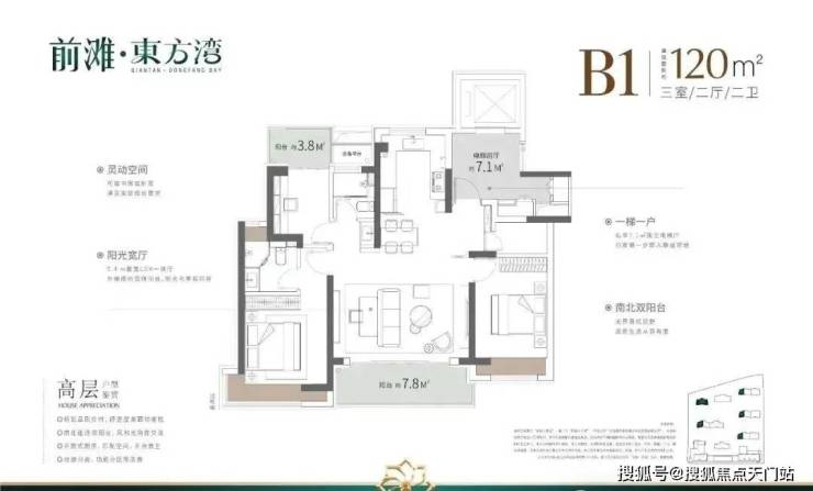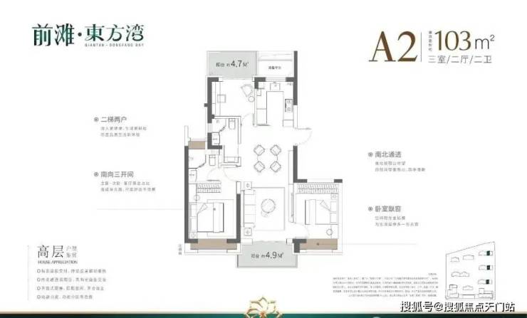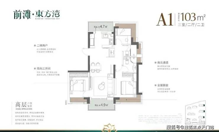 这3个户型三开间朝南、室内 “ 朝南2飘窗+1阳台 ” 、再加上 “2卫”、“动静分离” 的设计,不管是采光、视野、通风、私密性,还是实用性都十分出色。