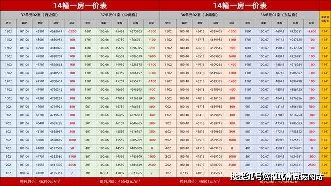 各个楼层的一房一价以及各楼层之间的价差,独家君也给大家整理好了,总结来说注意以下几点: