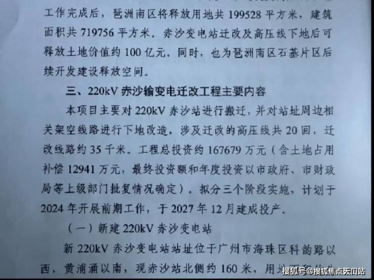 高压线、变电站迁改问题,明确今年就会开展前期工作,2026年完成拆除。