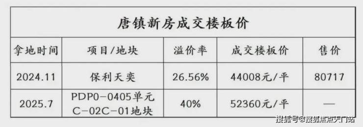 25年7月25日的土拍现场,唐镇地块的争夺堪称“白热化”。62轮报价后,楼面价定格在5.24万元/㎡,溢价率突破40%。这个数字放在唐镇,足以让市场倒吸一口凉气——要知道,2024年11月保利拿下的唐镇地块,楼面价还停留在4.4万元/㎡,短短8个月,地价涨幅近20%。