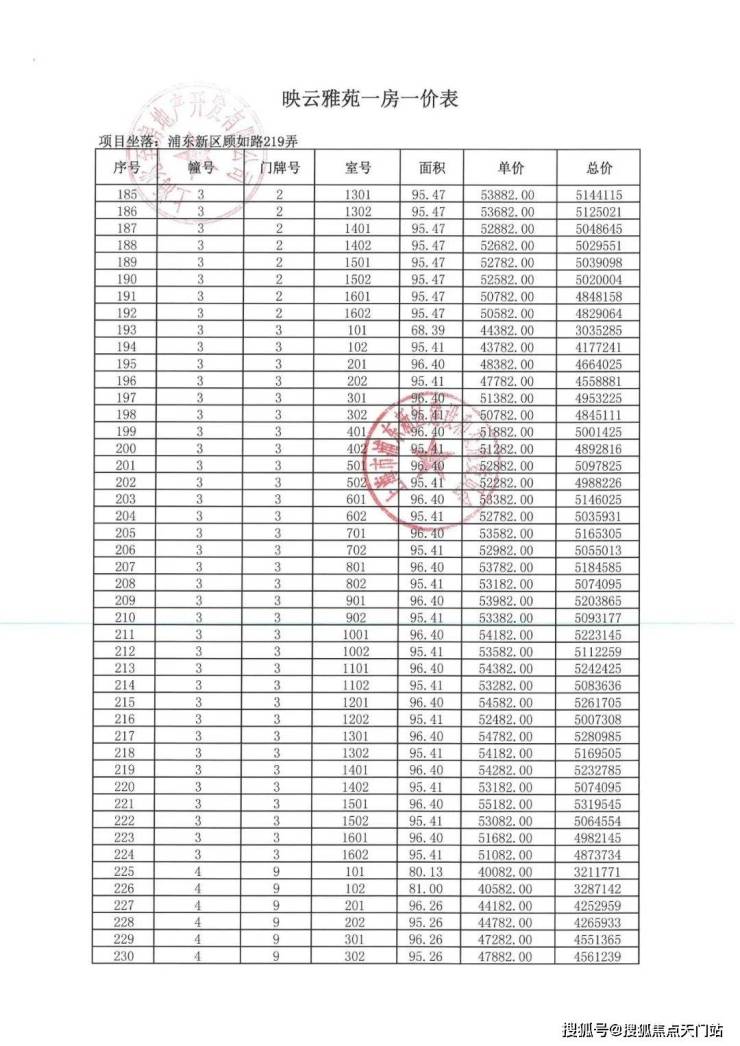 一房一价表