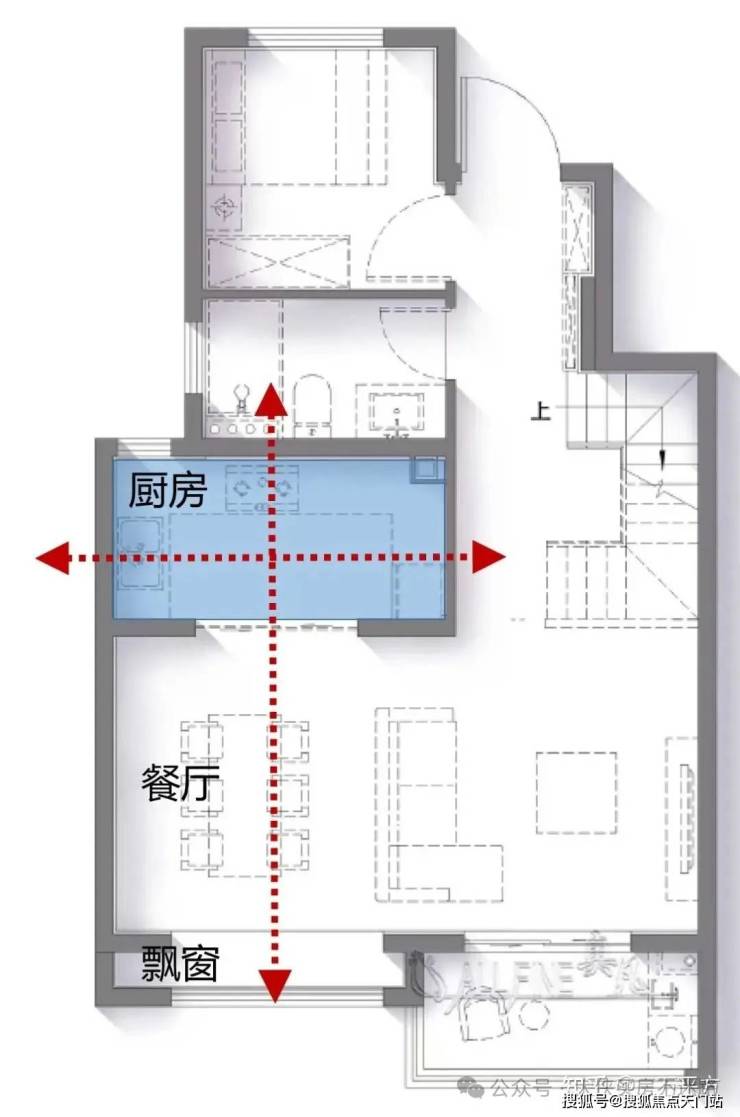 此外,这个餐厅的空间,继续向北渗透延伸,餐厅与厨房的也形成相互延伸,让空间再次延展开阔。