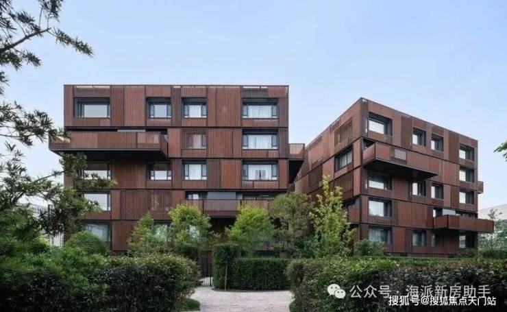 遵循去繁至简的设计理念,沁风雅苑建筑立面采用优雅木色调搭配竖条木纹,生动质朴的色调外形,呈现极简主义的建筑艺术。