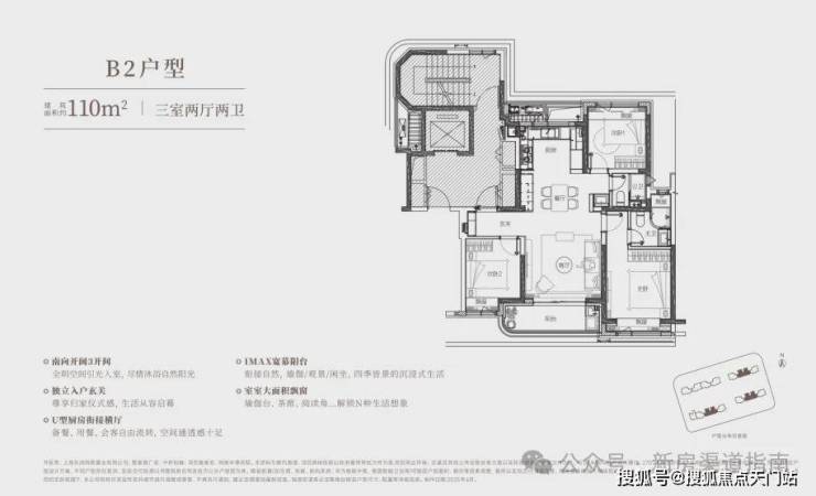 建面约110㎡边套(B1户型),1个宽面阳台、5个飘窗,整体南向面宽做到了约12.3米,大横厅面宽约5.4米,带来超大空间体验和充足通风采光。更为难得的是,该户型标配了全屋飘窗,主卧更是拥有270°转角飘窗,拓宽室内景观视野的同时,增加了实际空间使用率,加上三玻两腔系统窗隔音,在欣赏窗外景色的同时,也不会被噪音打扰。建面约110㎡中间套(B2户型),也同样做到了南北通透,三开间朝南,洄游动线,布局合理,无论是空间尺度还是通风采光,与边套享受一样的品质感!