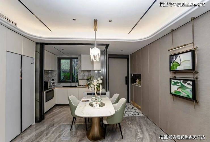 项目的厨房采用 金属框+艺术玻璃移门,推拉丝滑颜值颇高!