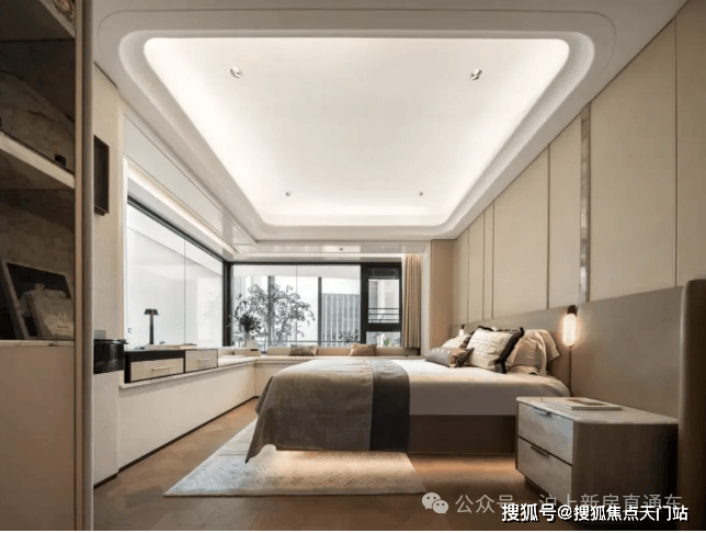 其二,大主卧带约270°飘窗,市面罕见,秒杀同级紧凑四房主卧的舒适度、采光和视野。