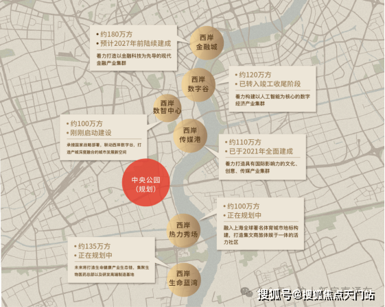 徐汇滨江热度之高,是得益于远瞻世界的战略规划,徐汇滨江打造“世界卓越水岸”,规划有七大百万方组团。徐汇滨江迄今已规划六个百万方组团,聚焦⼀港、⼀⾕、⼀城、⼀场、⼀湾、⼀心的六个百万⽅空间布局(⻄岸⾦融城、⻄岸数字⾕、⻄岸数智中心、⻄岸传媒港、⻄岸热⼒秀场和⻄岸⽣命蓝湾),而第七大组团“中央公园”,完美覆盖海上·清和玺所在上海植物园区域,未来将无界链接城市生态资源,促进徐汇滨江与城区无界融合、兑现徐汇滨江的高质量发展。