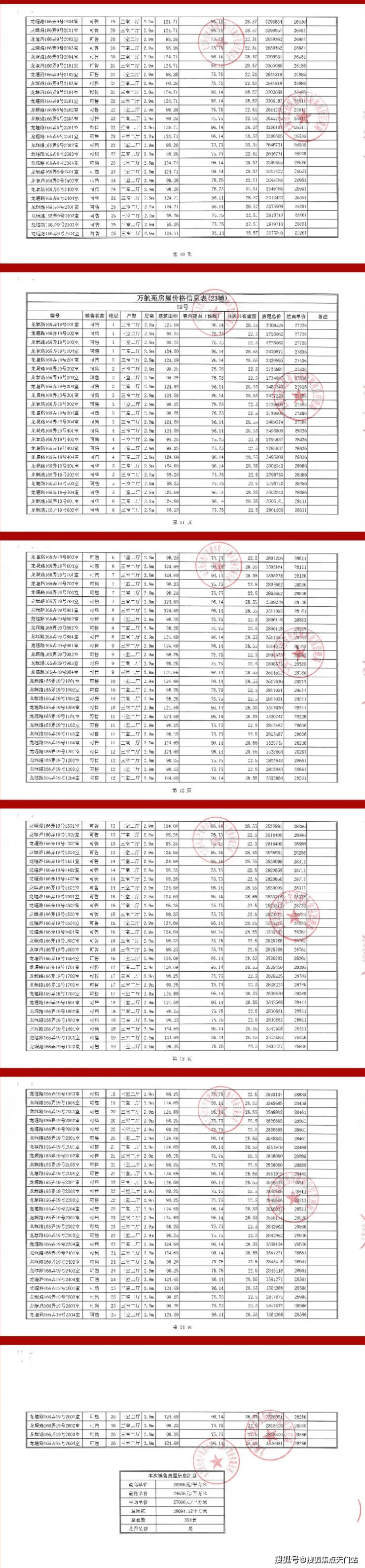 上期一房一价表