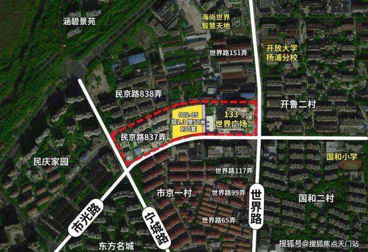 项目四至范围:东至002-06地块、南至市光路、西至居民小区、北至民京路。项目总用地面积约7458.94平方米,容积率2.3,计容面积约17155.56平方米。