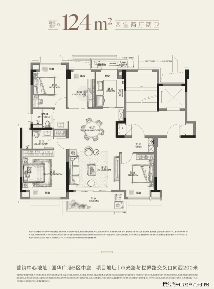 建面约124㎡的一步到位改善四房,三开间朝南设计,主、次卧互不干扰;南北通透的超大尺度公区,各种生活场景均可在此实现;得益于洋房产品属性,得房率会相对较高,功能性4房设计,无论是三代同堂或是二胎家庭即可容纳。
