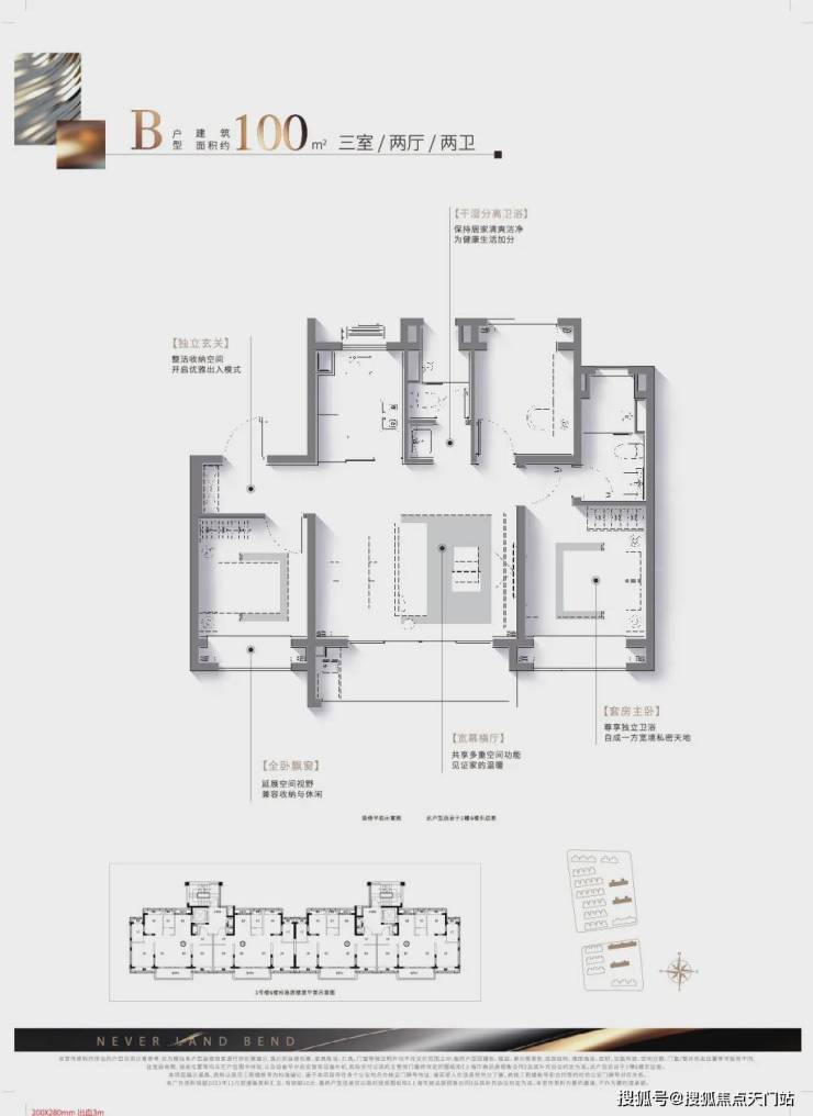 建面约100㎡宽厅三房,改善家庭至优选:在南向三开间的基础上,该户型“创新横向宽厅,营造百平米少有的客厅尺度“打造3.5南向面宽。