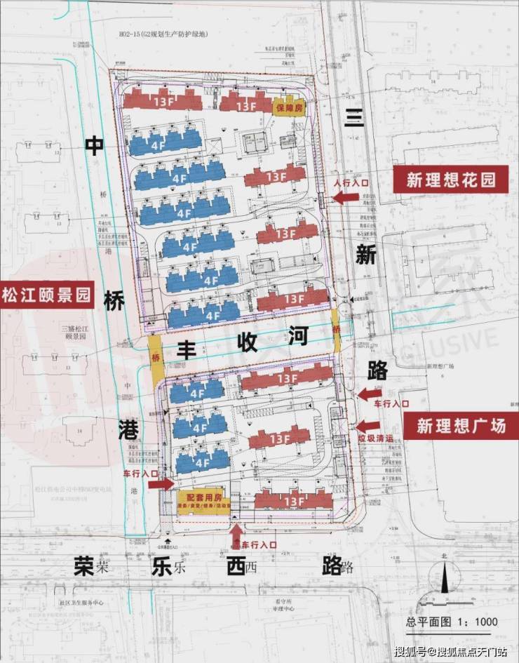 H02-18号,容积1.43, 拟建3幢13F小高层,3幢4F多层,共计233套房源。两幅地块,高层间最大栋距约34.5米。