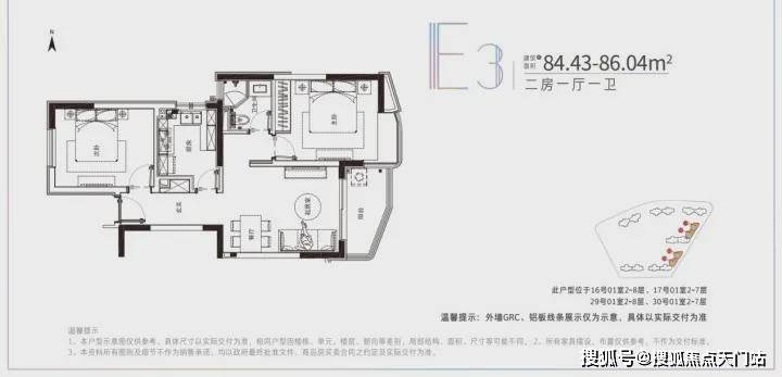 建面约78-91.22平米的小户型,两房两厅一卫的格局,非常适合年轻刚需家庭上车。