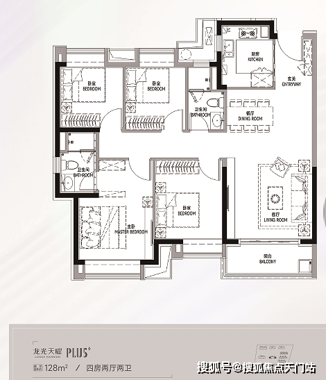 「龙光天曜」在户型设计方面也是下了很大的功夫,在保证户型方正的基础上,通过对住宅内部功能空间结构的科学设计,尽可能创造更多南向空间。