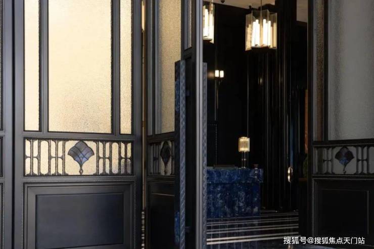 细节之处,光是一个接待台,就采用了产自玻利维亚约4500米海拔的高原矿脉——玻利维亚蓝石材,是世界上储存量最少的石材之一,非常珍贵;而大堂的柱子,也是巴西乌金奢石;
