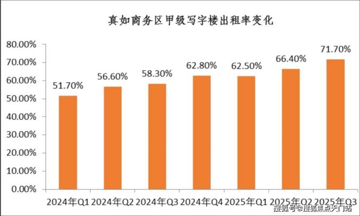 真如的 产业规模 十分扎实。公开数据显示,2024年,中海中心跃居上海写字楼年度租赁市场成交榜首。真如商务区甲级写字楼出租率也一路攀升——从2024年一季度的51.7%,提升至2025年三季度的71.7%。