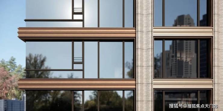 可视面都是古铜色金属铝板、米黄色铝板/石材、边套270°大转角飘窗,且从正面、侧面到背面,立面都保持精致统一,四面平权尽显高端质感。