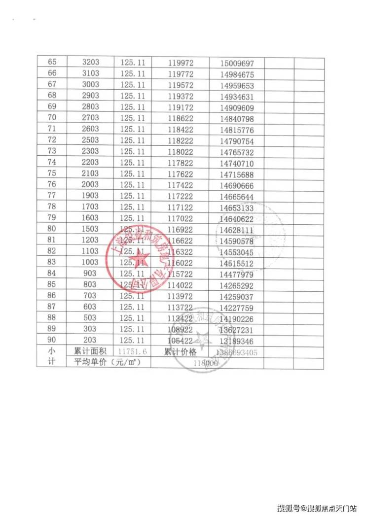上期一房一价表:
