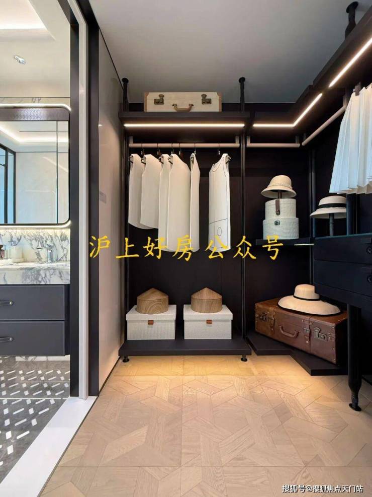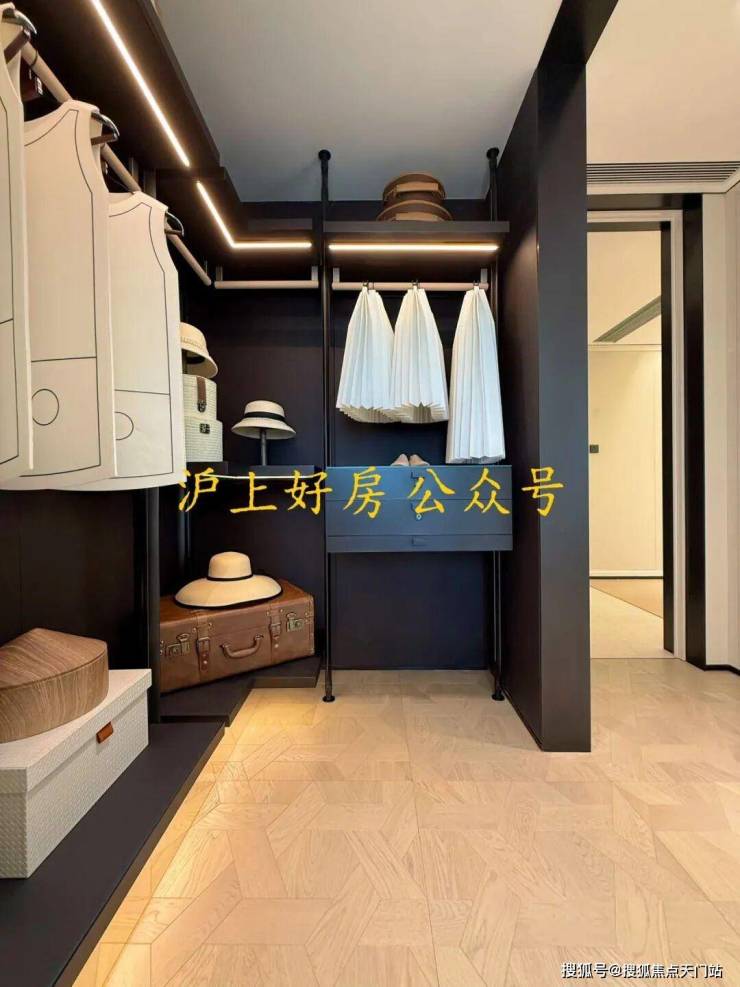 就以240㎡户型的主卧衣帽间来看,项目为业主提供了整体收纳、嵌入化妆台、mini bar等多种方案。