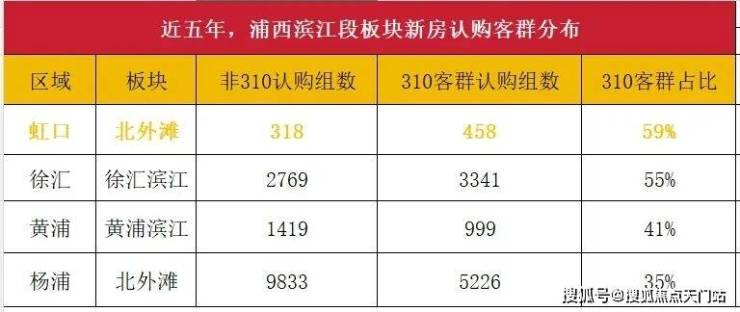虽然新盘入市不多,但从占比来看,北外滩是浦西滨江段中最受310客群(上海本地高净值人群)青睐的板块,310客群认购占比超徐汇滨江、黄浦滨江等板块。