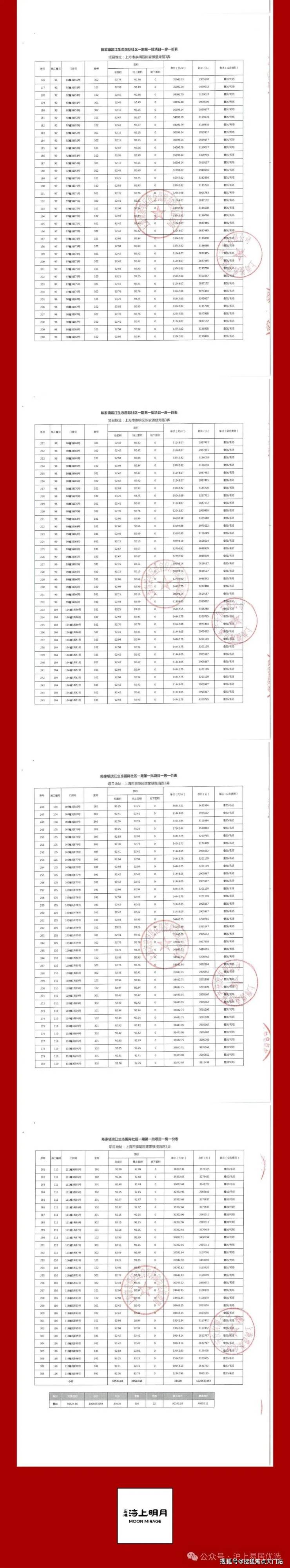 一房一价表公示: