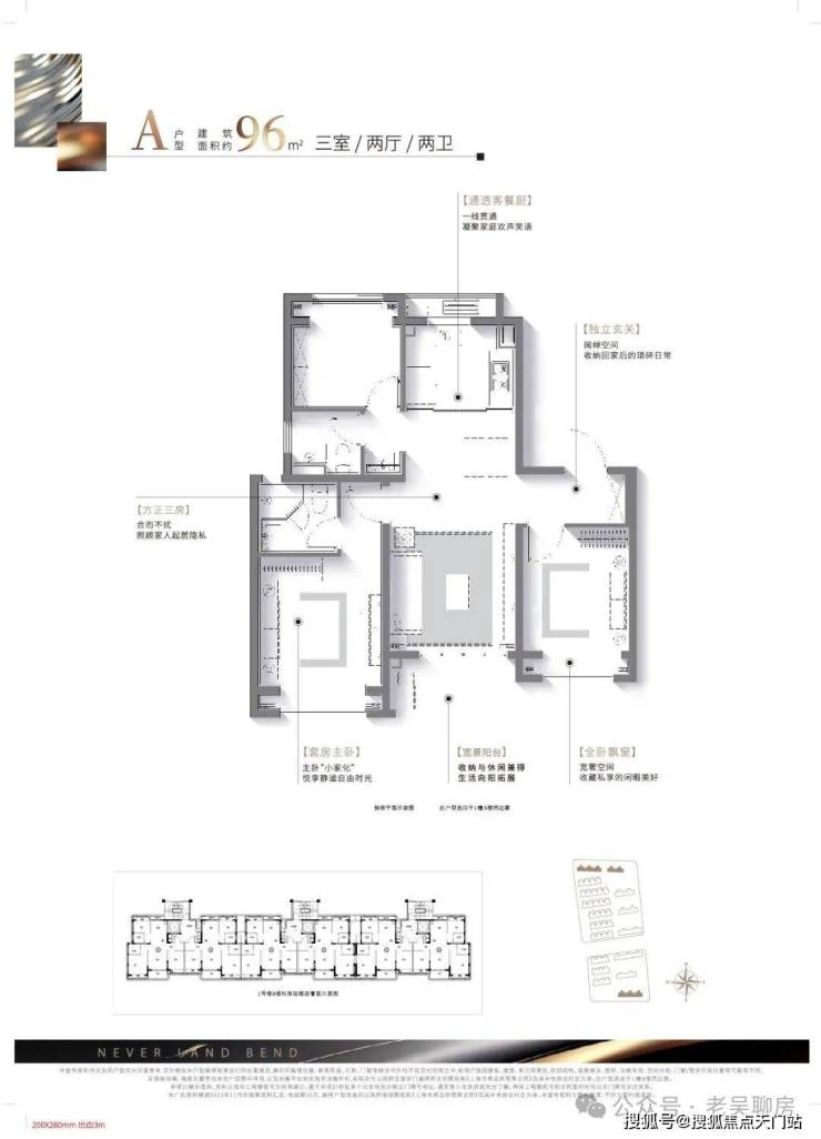 建面约96㎡精质三房,一步到位舒适人居:该户型方正格局、南北通透无连廊,既容纳二人世界的浪漫,也可将三口之家的幸福一并珍藏。