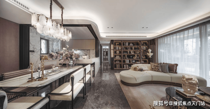 进门之后,恍若走进一幅立体绽放的画卷。地面采用了石材拼花,纹理如行云流水般舒展,在光影交错间勾勒出 低调的奢华。